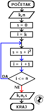 8.3.. Izračunati i ispisati sumu kvadrata prirodnih brojeva od k do n.