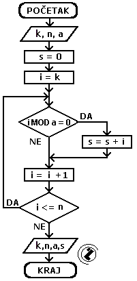 - ako i nije djeljivo sa a formirati novu sumu (s=s+i)