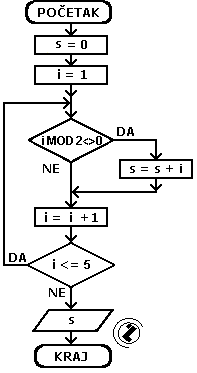 8.3.. Izračunati i ispisati sumu neparnih prirodnih brojeva od 1 do 5.