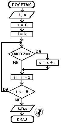 8.3.. Izračunati sumu prirodnih brojeva u intervalu od k do n koji su neparni.