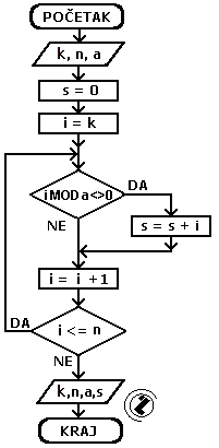 - ako i nije djeljivo sa a formirati novu sumu (s=s+i)