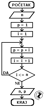 - sve dok je promjenljiva i manja ili jednaka n idi na korak 4 inače izađi iz petlje