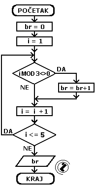 - ako i nije djeljivo sa 3 uvećati vrijednost brojača (br=br+1)