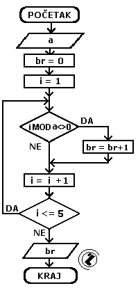 - ako i nije djeljivo sa a uvećati vrijednost brojača (br=br+1)
