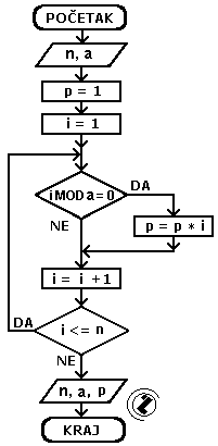 - ako je i djeljivo sa a formirati novi proizvod (p=p*i)