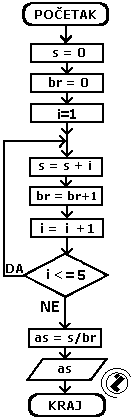 - uvećaj vrijednost kontrolne promjenljive (i=i+1)