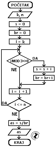 8.2.. Napisati program za ispis aritmetičke sredine prirodnih brojeva od k do n koji nisu djeljivi sa 3.