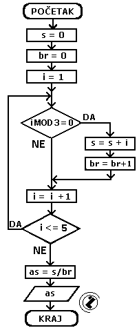 8.3.. Izračunati aritmetičku sredinu prvih 5 prirodnih brojeva koji su djeljivi sa 3.
