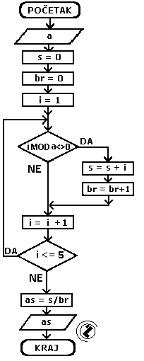 8.2.. Izračunati aritmetičku sredinu prvih 5 prirodnih brojeva koji nisu djeljivi sa a.