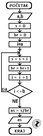 8.2.. Izračunati aritmetičku sredinu prirodnih brojeva od a do b.