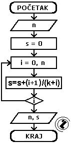 formirati novu sumu (s = s + (i+1)/(k+i))