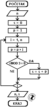 - početna vrijednost sume (s=0)