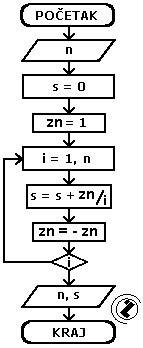 formirati novi količnik znaka i kontrolne varijable i (zn/i) i dodati na sumu (s=s+zn/i)