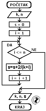 - formirati novu sumu (s=s+2/(k+i))