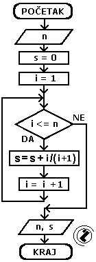 - početna vrijednost sume s (s=0)