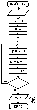 - dok je kontrolna promjenljiva i <= n ponovi petlju (idi na korak 5), inače kad je i > n izađi iz petlje