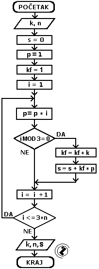 - dok je kontrolna promjenljiva i <= 3*n ponovi petlju (idi na korak 7), inače kad je i > 3*n izađi iz petlje