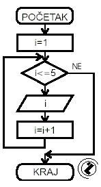 Zadatak: Ispisati prirodne brojeve od 1 do 5.