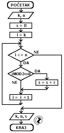 Pomnožiti neparnih prirodnih brojeva od k do n.