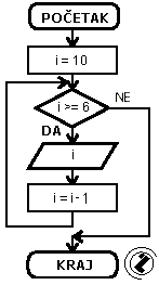 Ispisati prirodne brojeve od10 do 6 unazad.