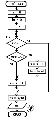 Izračunati aritmetičku sredinu neparnih od 1 do 5.
