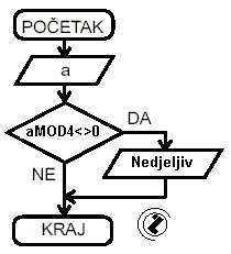Učitati a. Ako a nije djeljiv sa 4, ispisati Broj nije djeljiv sa 4.