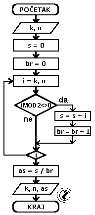 Izračunati aritmetičku sredinu neparnih od k do n.