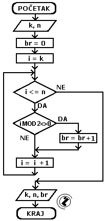Prebrojati neparne od k do n.