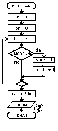Izračunati sumu neparnih od 1 do 5.