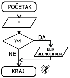 Učitati y, Ako je y veće od 9 Ispisati JEDNOCIFREN.