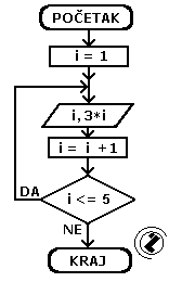 Ispisati trostruku vrijednosti prirodnih brojeva od 1 do 5.