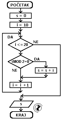 Ispisati parnih prirodnih brojeva od 10 do 20.