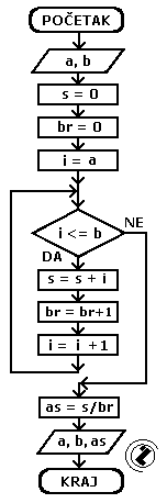 Izračunati aritmetičku sredinu prirodnih brojeva od a do b.