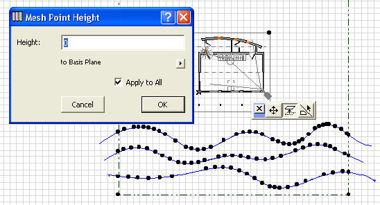 Tačkama mreže dodjeljujemo vrijednost Z koordinate kako bismo odredili njihovu visinu. Tu vrijednost možemo dodijeliti svim tačkama duž splajna.
