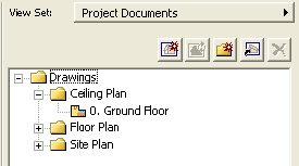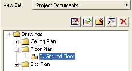 Selektujte i kliknite dva puta na "0. Prizemlje" u odeljku Osnove menija View Sets. Time će biti aktivirani parametri kombinacije lejera, razmere i opcija displeja koje smo podesili u koordiniranju projektne dokumentacije.