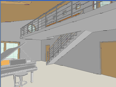 Da opremite izložbeni prostor, postavite klavir u prostoriju. U dijalogu objekta, odaberite objekat "Piano" (klavir), modifikujte ugao rotacije 900 i postavite ga u središte sobe. Da dovršite postavku, za klavir postavite objekat "Stool" (klavirska stolica) i pogledajte rezultat u 3D.