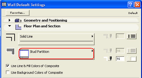 U sledećem koraku ćemo nacrtati unutrašnje pregradne zidove. Otvorite dijalog Wall Settings i odaberite kompozitni zid (composite wall), Stud Partition koji ste kreirali u podešavanju okruženja za crtanje.