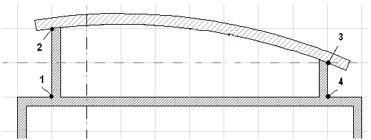 Tipkom Shift povucite vertikalni zid i kliknite na unutrašnju ivicu zakrivljenog zida da dovršite pregradni zid (tačka 3).