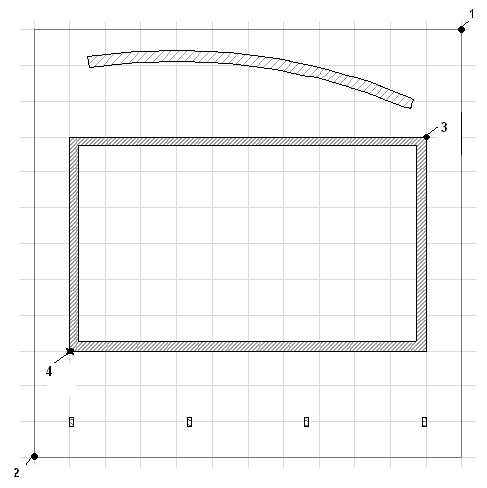 Kliknite na čvor rešetke u tački 3 da započnete crtanje pravougaonog otvora u ploči.