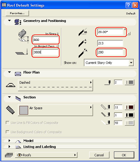 podešavanja krova (Roof Settings) tako što ćete kliknuti dva puta na