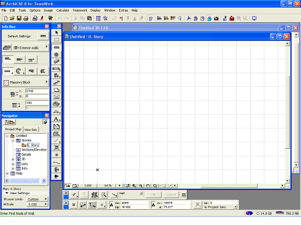 Na naslovnoj gredi ArchiCAD-ovog radnog lista (worksheet) prikazano je ime projekta na kome se radi i oznaka ili naziv etaže (story) koja je trenutno na ekranu, Ako smo upravo počeli da crtamo novu osnovu naš dokument će nositi ime "Untitled" i bićemo na početnom spratu "0. Story".