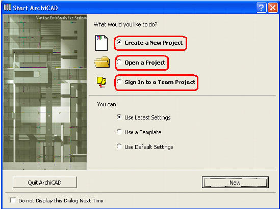 Kada instaliramo ArchiCAD 8 na hard disk, program pokrećemo sa dva klika na ArchiCAD ikonu (ne na ime ikone) ili preko Start menija.