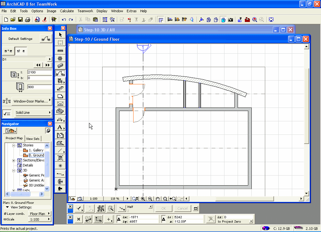 Upotrebite isti tip vrata za toaloete, postavite ih simetrično na drugi kraj ulaznog dijela. Za budući toalet promenite širinu na 750 mm i panel vrata na Style 1 (prikazan pod Frame, Panel, Shutter i Handel Types - tipovi dovratnika, krila, kapala i kvaka).