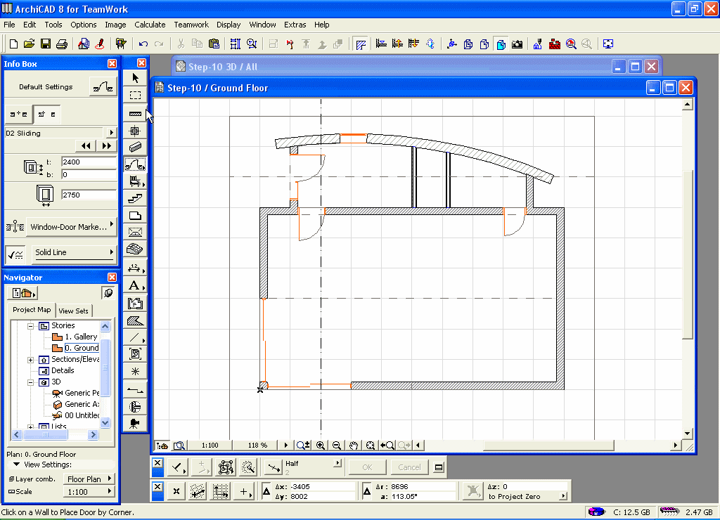 Selektujte vrata (kliknite na jednu ugaonu tačku vrata alatkom strelica ili tipkom Shift; tačka br. 1).