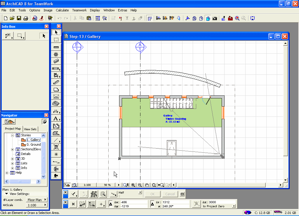 Kliknite kursorom "oko" da definišete dužinu lijevom uglu ploče balkona (tačka 2).