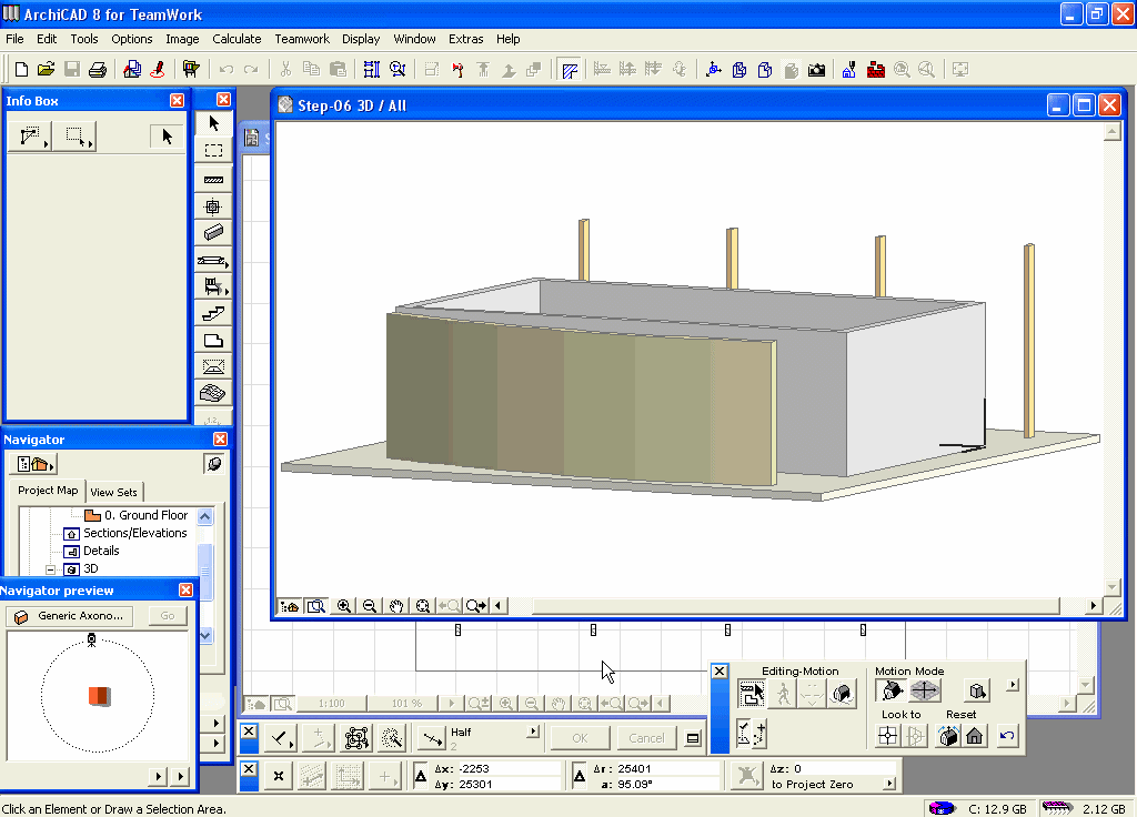 Kretanje u 3D prozoru komandom Model Axis i Turn