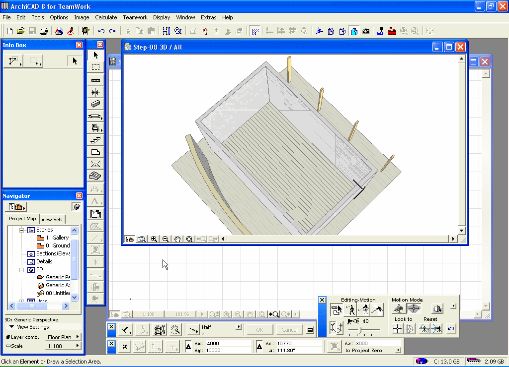 Kliknite na unutrašnju tačku ugla gornjeg lijevog zida da započnete crtanje ploče (tačka broj 1 na slici).