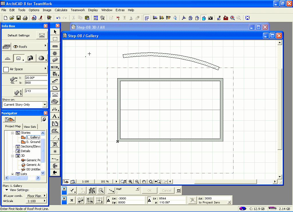 Selektujte krov u 3D prozoru (kliknite na krov alatkom strelica)
