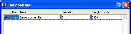 U ovom koraku kreiraćemo ime aktivnog nivoa. Odaberite dijalog Story Settings iz opcije Stories u meniju Options. Kliknite u kućicu za tekst i upišite "Osnovna prizemlja". Potom kliknite OK.