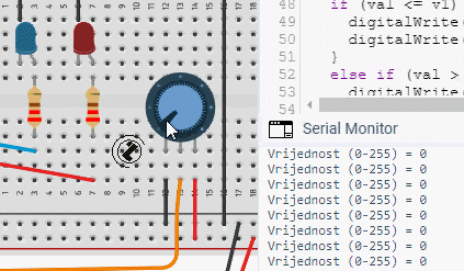 potVal = analogRead(analogniulaz); // ulaz potenciometar